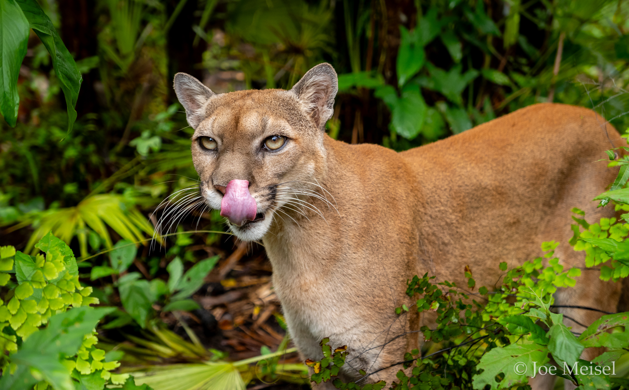 Puma (Felis concolor), the same species as North America's mountain lion, enjoys a meal of its own