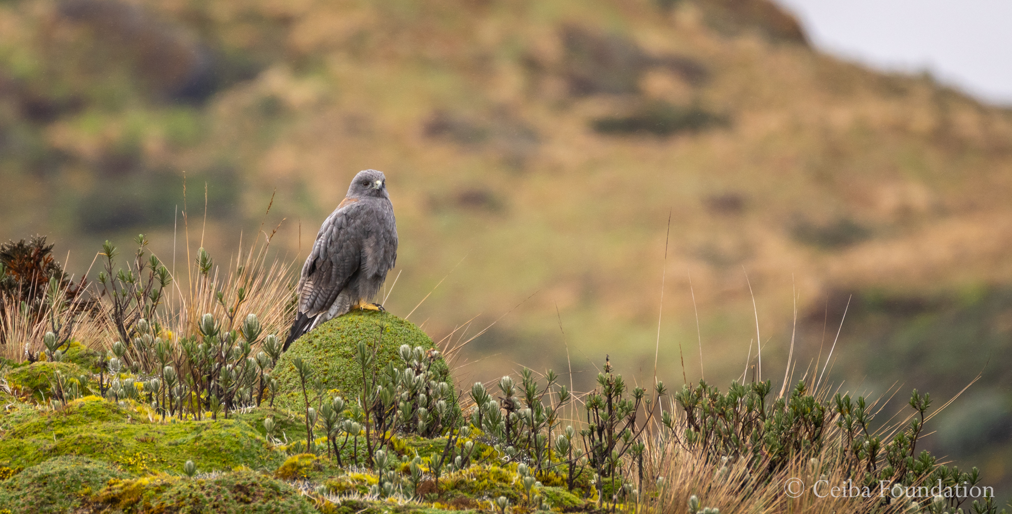 A little higher up, we entered Cayambe-Coca Ecological reserve, and spied this Variable Hawk perched on a cushion plant